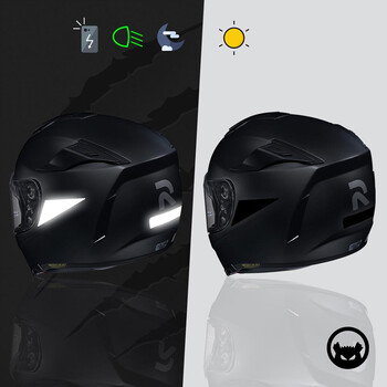 • Goedgekeurde reflecterende stickers voor motorhelmen.