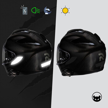 • Goedgekeurde reflecterende stickers voor motorhelmen.